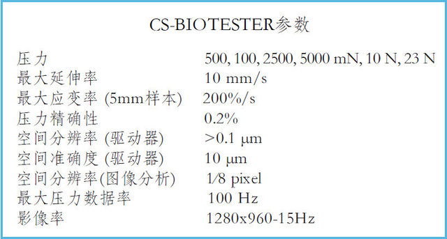 BIOTESTER能測試的生物材料包括:皮膚、韌帶、血管、心臟瓣膜、鞏膜、細胞膜、支架等及其替代組織。儀器緊湊、使用便捷,內置強大的圖像跟蹤和分析軟件可以對數據、圖像和視頻進行同步處理。數據可以以電子表格的形式導出,或者導入到分析軟件中進行分析。