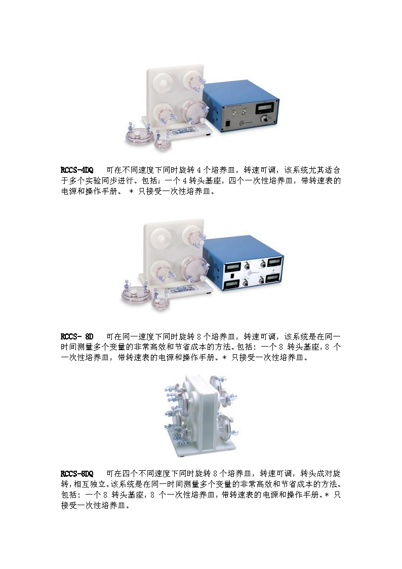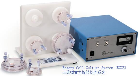 Synthecon  RCCS-RCMW旋轉微重力三維細胞培養系統是一種墊付傳統的三度空間微重力培養系統。其利用培養盤或培養管柱進行培養,將培養液、細胞或組織一起加入培養盤或培養管柱中,并去除鎖有氣泡。培養盤或培養管柱安裝于具有旋轉馬達的基座上,內部組織、細胞或細胞團塊因旋轉切線力量及重力雙重影響下而保持懸浮狀態。隨著細胞或組織成長,旋轉速度可做調整,細胞形成團塊之后,必須提高轉速使其不會沉降而碰觸底部。旋轉的目的是要讓鎖有細胞均勻交換養分和氣體,并且細胞和細胞之間可有足夠的接觸,有利于細胞聚集。另外,不論是培養盤或培養管柱背側均具備硅膠制成的換氣膜以利進行氣體交換,使細胞/組織得到充分氧氣及排除代謝后的廢氣。