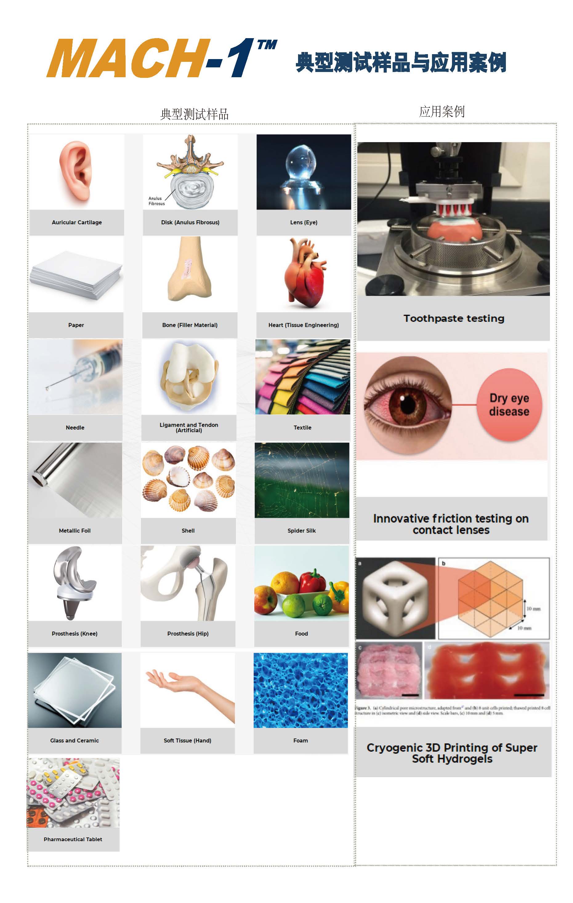 該系統集成3D多功能3D壓痕、拉伸、壓縮、三彎曲、四點彎曲、扭力、剪切、摩擦磨損、電特性等各種力電多物理場測試。 能對極軟、極硬組織材料進行精密可靠的機械刺激和表征。允許表征的機械性能包括剛度、強度、模量、粘彈性、塑性、硬度、附著力、腫脹和松弛位移控制運動各種機械特性