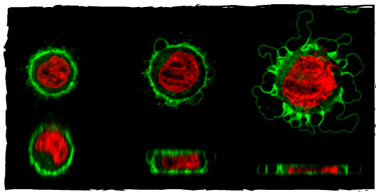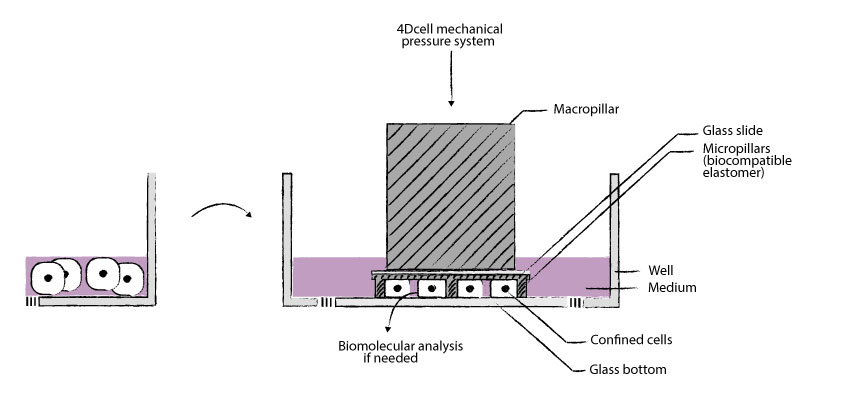 細胞被均勻地限制/壓縮在兩個亞微米分辨率的兩個平行表面之間。