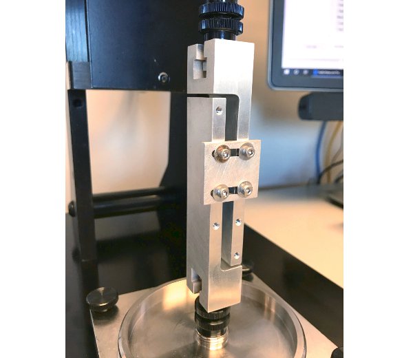 測(cè)試膠粘劑的質(zhì)量時(shí),測(cè)試膠粘劑沿粘合界面的抗剪切力的重要性能。 在這種情況下,重要的是小化層之間的剝離,這可能會(huì)大大降低粘結(jié)的耐搭接剪切強(qiáng)度。 基于專為在硬質(zhì)塑料和金屬部件中實(shí)現(xiàn)牢固粘合而設(shè)計(jì)的夾具,這些夾具已針對(duì)測(cè)試生物材料或組織之間的粘合特性進(jìn)行了化。 它帶有一個(gè)te殊的固定器,該固定器旨在促進(jìn)直接注入兩個(gè)壓板之間的水凝膠的原位制備,以大程度地減少暴露于空氣中。 在水凝膠的情況下,還可以測(cè)量凝膠的剪切強(qiáng)度及其與壓板材料的粘附性。