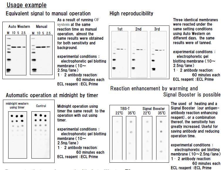 3. Automatic operation including washing, blocking, washing, primary antibody reaction, washing, econdary antibody reaction, washing of the membrane