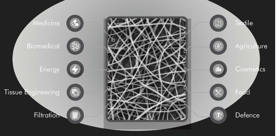 適用于開發商用納米纖維產品,例如面罩,電池隔板,空氣和液體過濾器,傷口敷料等。