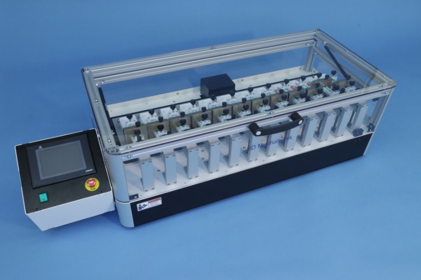 在牙刷模擬器中多可同時(shí)磨損4/8/12個(gè)試樣。每個(gè)樣品的形狀和材料(硬度)可以不同,并且可以加載各種水平的接觸壓力。樣品室彼此分開,使得每個(gè)樣品可以用其自身的液體(例如牙膏-水混合物)操作,并可單清洗。的刷子都由中央驅(qū)動(dòng)系統(tǒng)控制,因此測(cè)試中使用的樣品所選擇的運(yùn)動(dòng)類型都是相同的。高級(jí)運(yùn)動(dòng)控制器可確保j確的速度和軌跡,并且速度和軌跡可以進(jìn)行高精度調(diào)整。運(yùn)動(dòng)順序(牙齒清潔技術(shù))可以向前,向后和圓形運(yùn)動(dòng)自由組合。借助可選的軟件模塊可以輕松編程實(shí)現(xiàn)復(fù)雜運(yùn)動(dòng)順序。