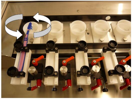 該裝置模擬在牙齒和材料樣本表面上的各種刷牙運(yùn)動(dòng)。