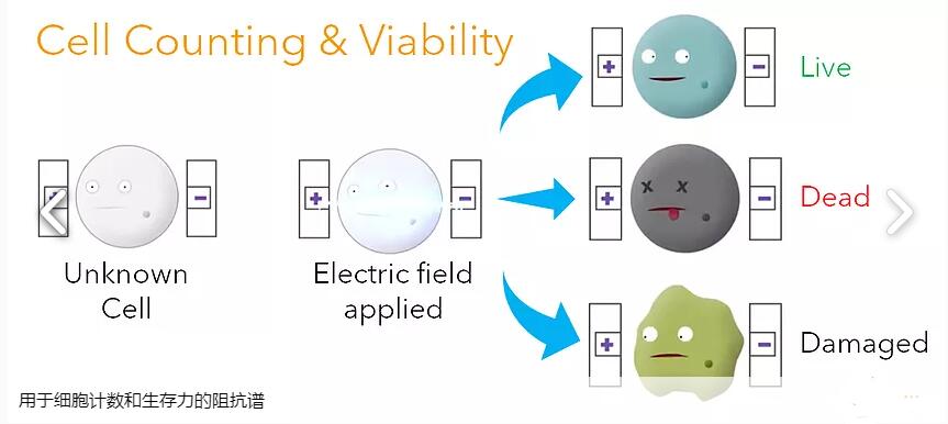 不需要熒光染料/染色劑或磁珠來“標記”您的細胞進行分析。這樣可以省去工作流程中的一個步驟,并為您節(jié)省試劑費用。它還會讓你的細胞保持其原始狀態(tài)以供分析。那么,我們實際上如何分析你的細胞呢?我們使用一種叫做阻抗的方法光譜學。不像經(jīng)典的熒光流式細胞術(shù)、磁性細胞術(shù)或成像顯微鏡;對于簡單的細胞分析,該方法不需要標記(即染料、染色劑或珠子)。
