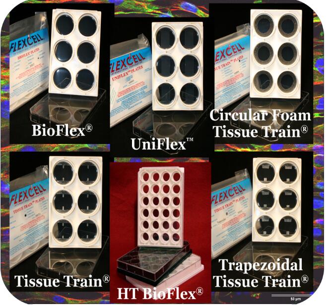 High throughput flexible-bottomed culture plates used with flexercell® Tension Systems to apply up to 8% equibiaxial strain to cells in monolayer culture.