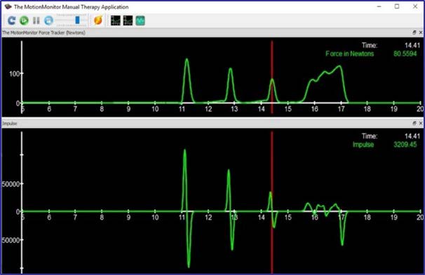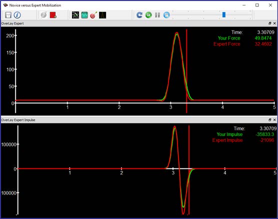 實時反饋 比較新手和專家數(shù)據(jù)以立即評估性能。 用戶可以捕獲和加載專家數(shù)據(jù)。 右側的后一張圖片顯示了新手(綠色)的記錄,并疊加了專家的力和脈沖數(shù)據(jù)(紅色)。 新手可以比較他/她如何執(zhí)行運動的關鍵要素,評估力的水平和施加力的速度。