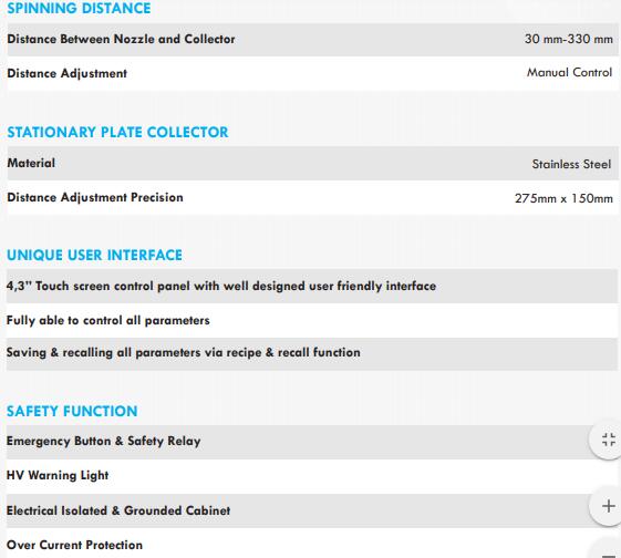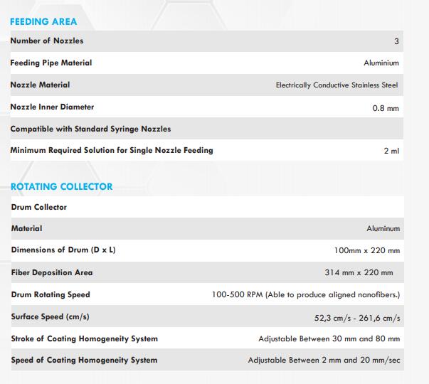 它有3個混合噴嘴,在轉鼓收集器或平板收集器上旋轉,因此能夠生產排列良好的和