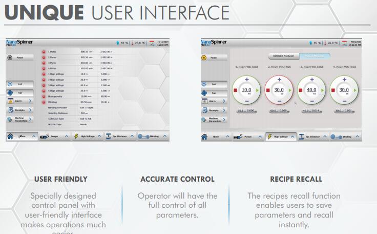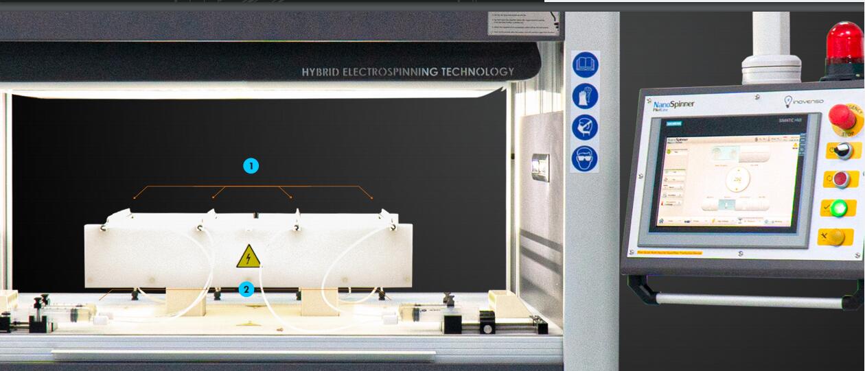 其du特的設計能夠生產納米纖維和復合材料,它容納4個注射泵和4個高壓電源,使其能夠同時與多達4種不同的聚合物一起工作,du立控制。