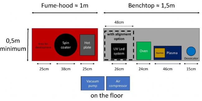 SU-8模具加工站是一個交鑰匙的產品,wu需購買任何其他設備。基本上僅需要一個化學通風廚和少量的工作空間。我們也可以根據您實驗室內現有的設備來調整報價。