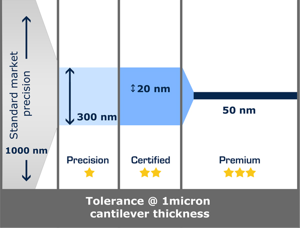 該高通量原子力顯微鏡,基于懸臂梁陣列傳感器 ,在保障精度同時改變傳統原子力顯微鏡通量低、測試樣品量少的的問題 基于原子力顯微鏡的微懸臂梁生物傳感器具有免標記、快速、實時、高靈敏度檢測等特點。因此,微懸臂梁生物傳感器可應用于生物醫學、環境監測、食品生產和軍事防御等領域。微懸臂梁生物傳感器已成為科學研究的焦點。 懸臂梁陣列傳感器介紹 基于原子力顯微鏡的微懸臂梁生物傳感器具有免標記、快速、實時、高靈敏度檢測等特點。因此,微懸臂梁生物傳感器可應用于生物醫學、環境監測、食品生產和軍事防御等領域。微懸臂梁生物傳感器已成為科學研究的焦點。 配套的德國廠家 微懸臂陣列和Microtips硅微針,Multilevel silicon parts硅網格(Silicon grids),SiO2腔硅膜等等,可定制各種微米級硅微制品. 高端懸臂微芯片為您帶來zui佳效果微懸臂陣列是具有單晶硅懸臂的芯片。這些懸臂梁傳感器可用于靜態和動態模式。因此,傳感器可提供 1um 和 5um 的懸臂厚度。每種厚度有 3 種不同的長度可供選擇:500um、750um 和 1000um。 懸臂式傳感器