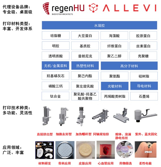 3D生物打印:從實現到未來,您的產品解決方案 3D生物打印,旨在創建復雜且可定制的生物兼容結構,依據3D設計組合細胞,生長因子和支架。眾多證據表明,3D細胞培養系統在生理學上比2D更具生物學意義,作為基礎科學和醫學研究的工具,3D生物打印技術正在快速發展。應用范圍從組織工程和再生醫學,以開發新型支架材料,生物墨水,制藥配方和細胞療法。今天,有幸向您介紹以下產品: 瑞士regenHU專業高端生物3D打印機